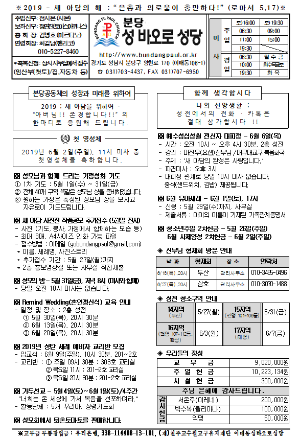 [ÁÖº¸] 2019³â 5¿ù 26ÀÏ ÁÖº¸ÀÔ´Ï´Ù.