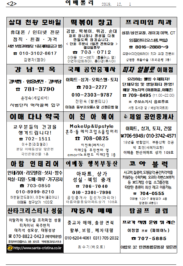 [À̸Żʸ®] 2019³â 12¿ù 1ÀÏ À̸Żʸ®ÀÔ´Ï´Ù.