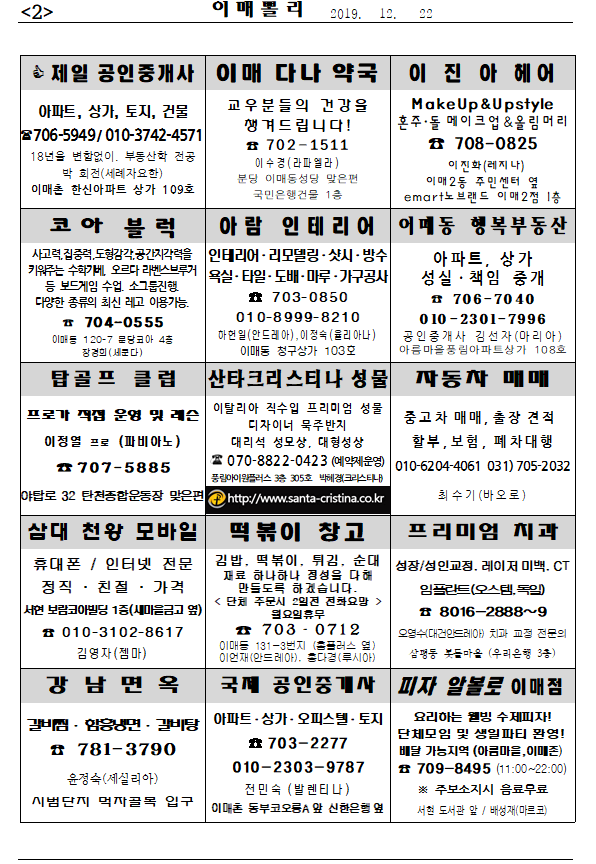 [À̸Żʸ®] 2019³â 12¿ù 22ÀÏ À̸Żʸ®ÀÔ´Ï´Ù.