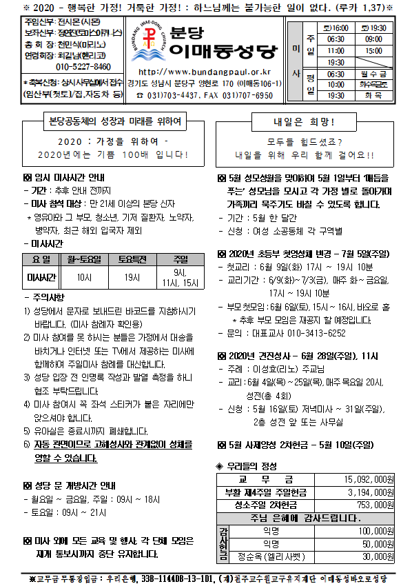 [ÁÖº¸] 2020³â 5¿ù 10ÀÏ ÁÖº¸ÀÔ´Ï´Ù.