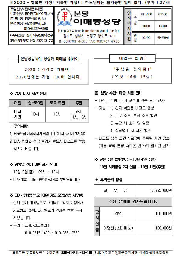 [ÁÖº¸] 2020³â 10¿ù 4ÀÏ ÁÖº¸ÀÔ´Ï´Ù.