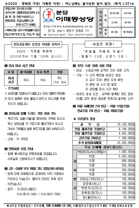 [ÁÖº¸] 2020³â 10¿ù 11ÀÏ ÁÖº¸ÀÔ´Ï´Ù