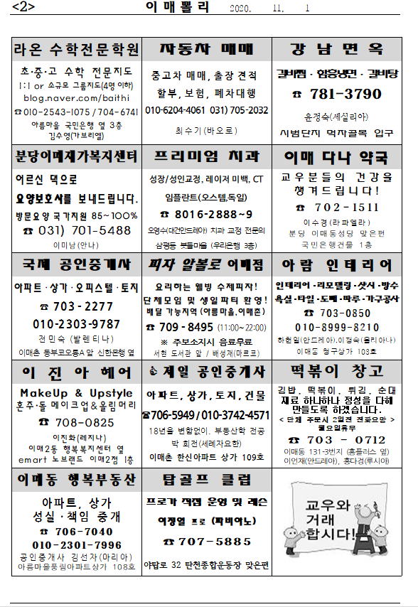 [À̸Żʸ®] 2020³â 11¿ù 1ÀÏ À̸Żʸ®ÀÔ´Ï´Ù.