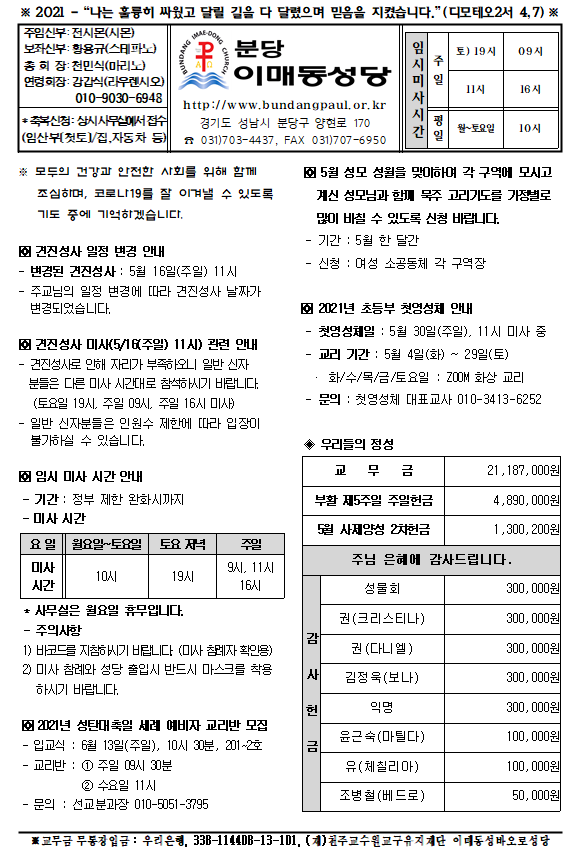 [ÁÖº¸] 2021³â 5¿ù 9ÀÏ ÁÖº¸ÀÔ´Ï´Ù.