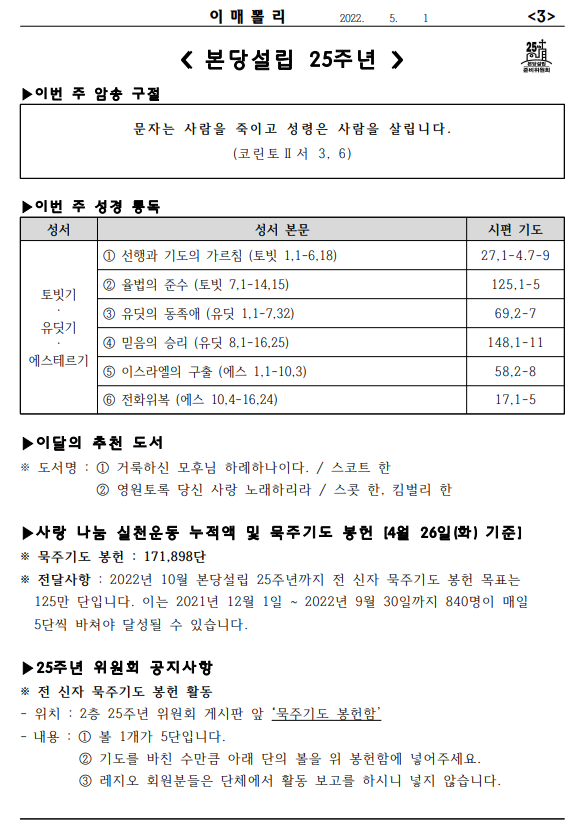 [À̸Żʸ®] 2022³â 5¿ù 1ÀÏ ºÎȰ Á¦3ÁÖÀÏ(»ý¸íÁÖÀÏ) À̸Żʸ®