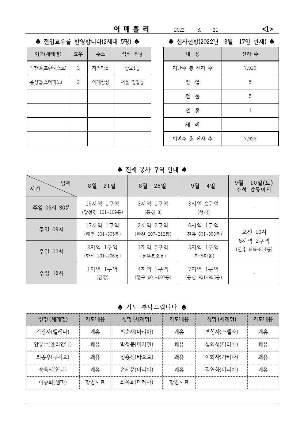 [À̸Żʸ®] 2022³â 8¿ù 21ÀÏ ¿¬Áß Á¦21ÁÖÀÏ À̸Żʸ®