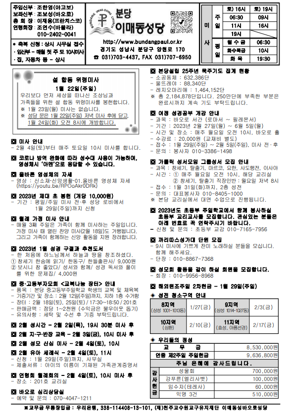 [ÁÖº¸] 2023³â 1¿ù 22ÀÏ ¼³ (ÇÏ´À´ÔÀÇ ¸»¾¸ ÁÖÀÏ) ÁÖº¸