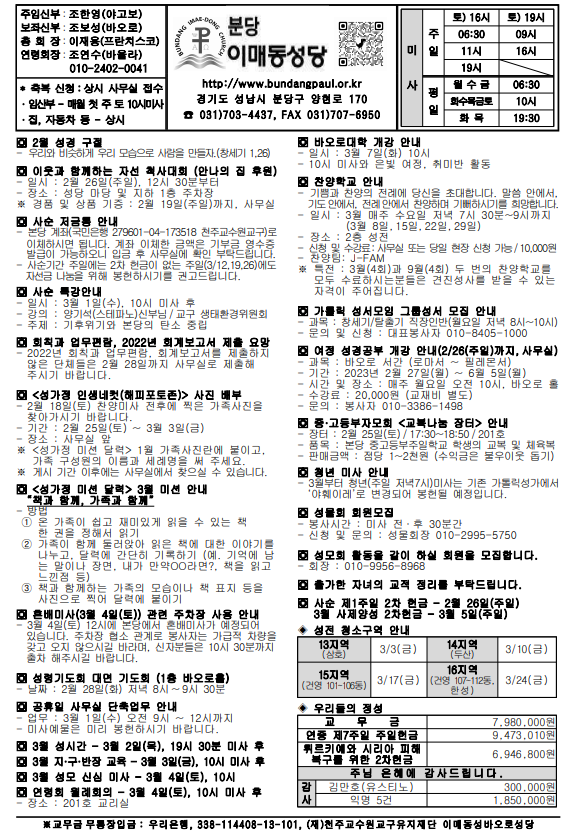[ÁÖº¸] 2023³â 2¿ù 26ÀÏ »ç¼ø Á¦1ÁÖÀÏ ÁÖº¸