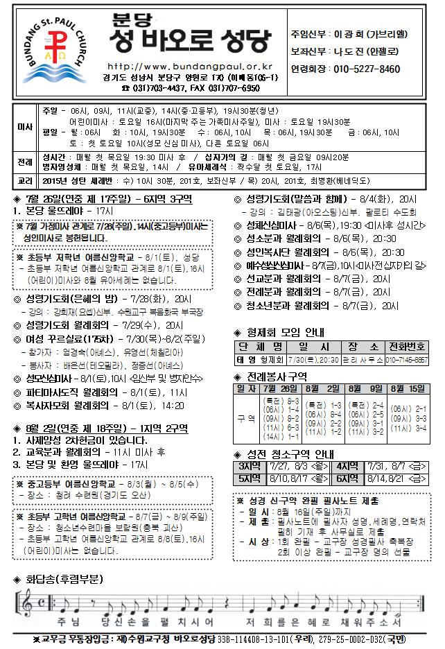[ÁÖº¸] 2015³â 7¿ù 26ÀÏ ÁÖº¸ÀÔ´Ï´Ù.