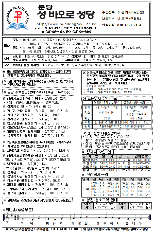 [ÁÖº¸] 2016³â 6¿ù 26ÀÏ ÁÖº¸ÀÔ´Ï´Ù.